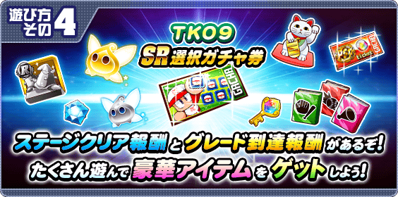 「TKO9SR選択ガチャ券」がゲットできるぞ!